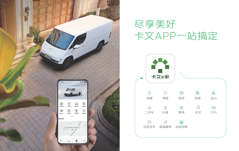 线上,PG模拟器卡文汽车开发并上线全生命周期一站式服务手机终端——“卡文e家”APP。不仅可以在线购车,还能实现预见性故障诊断、排除及预约维保,让车辆时刻保持更优状态。生态服务也是应有尽有,不管是租赁、补能,还是运力、金融、保险等方面的需求,都能一键搞定。此外,通过车联网还可直接控车、进行车队管理,让卡友的用车生活更加轻松、高效。